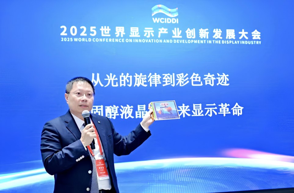 虹彩光電董事長(zhǎng)廖奇璋在「2025世界顯示產(chǎn)業(yè)創(chuàng)新發(fā)展大會(huì)」以全彩電子紙技術(shù)為主題進(jìn)行演講
